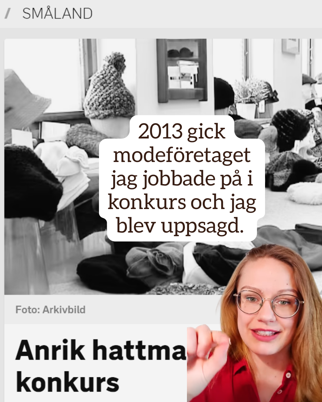 2013 gick modeföretaget jag jobbade på i konkurs. Det kom inte som en chock, företaget hade gått dåligt länge och hankat sig fram. Men när man sitter där kl 8:00 på morgonen på personalmöte och en konkursförvaltare säger att vi alla är uppsagda. Då blir det chockartad ändå.