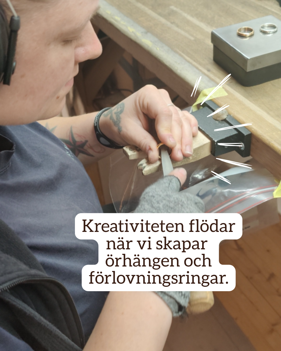 Nu sitter vi här. Njuter av allt vi lyckats åstadkomma. Ett roligt och flexibelt jobb. Där det inte är katastrof om man behöver vabba. Där vi gör bekväma smycken handgjort och hållbart. Där återvunnet silver förvandlas till comfort-örhängen som följer dig genom både vardagsruscher och lugna stunder. Där vi kan vara stolta över produktionen, produkten och materialvalen.