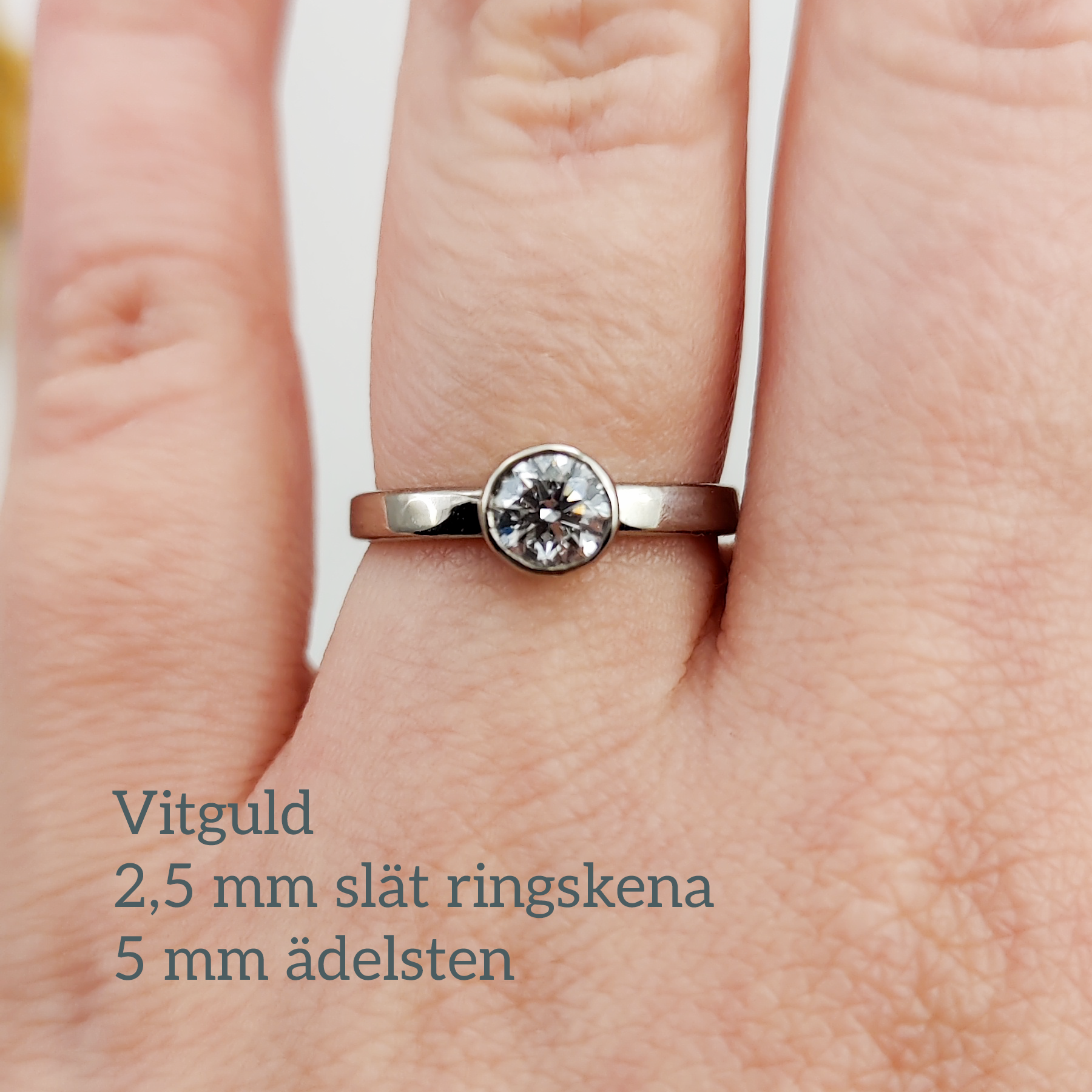 Inga problem! Vi kan göra en rendering i Photoshop med hur ringen kommer se ut. Så mailar vi den till godkännande innan vi börjar tillverka ringen. Vill du ha det skriv "Skicka renderat foto" i meddelandet när du checkar ut.
