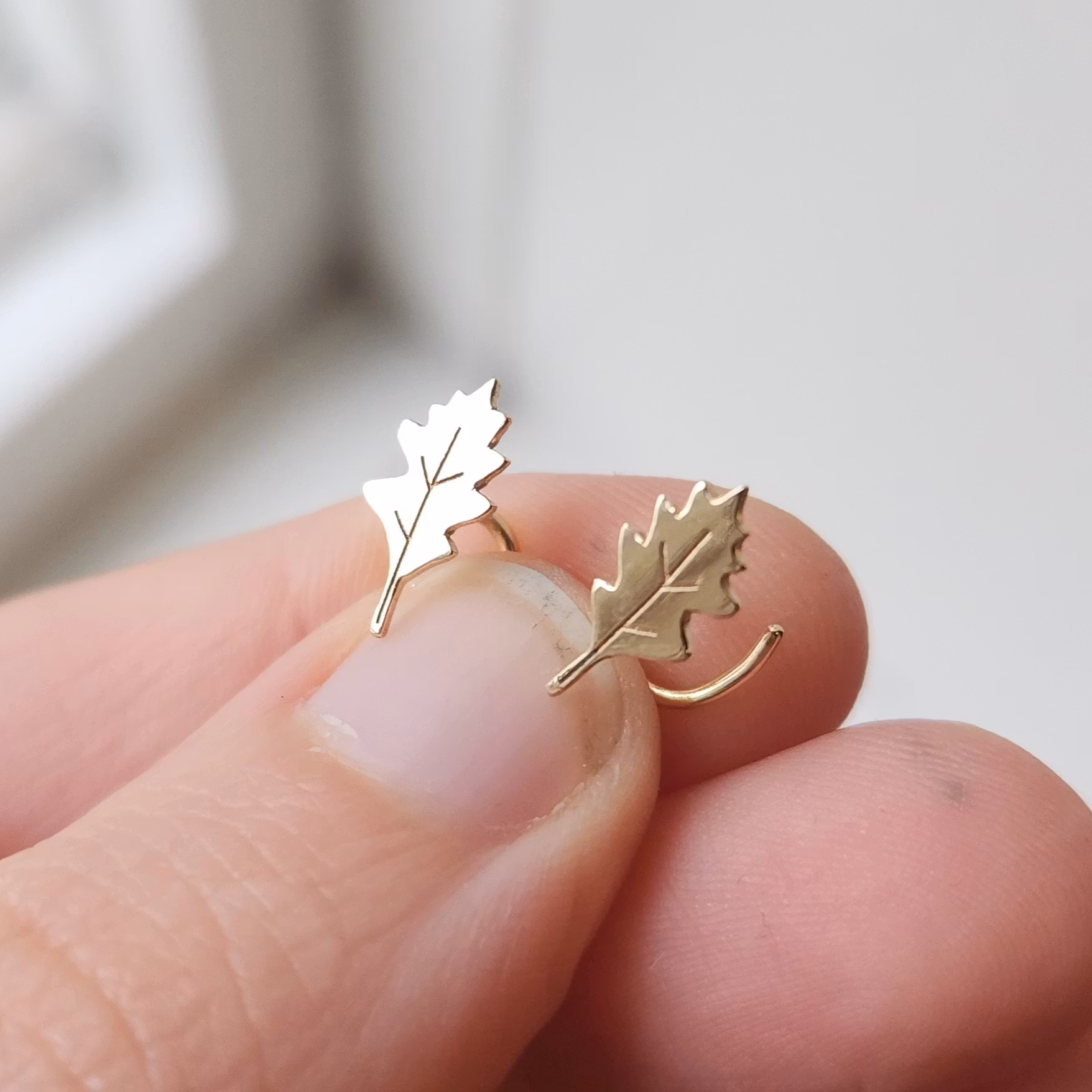 Örhängen med eklöv som påminner om skogen, där du kan känna dig som hemma!