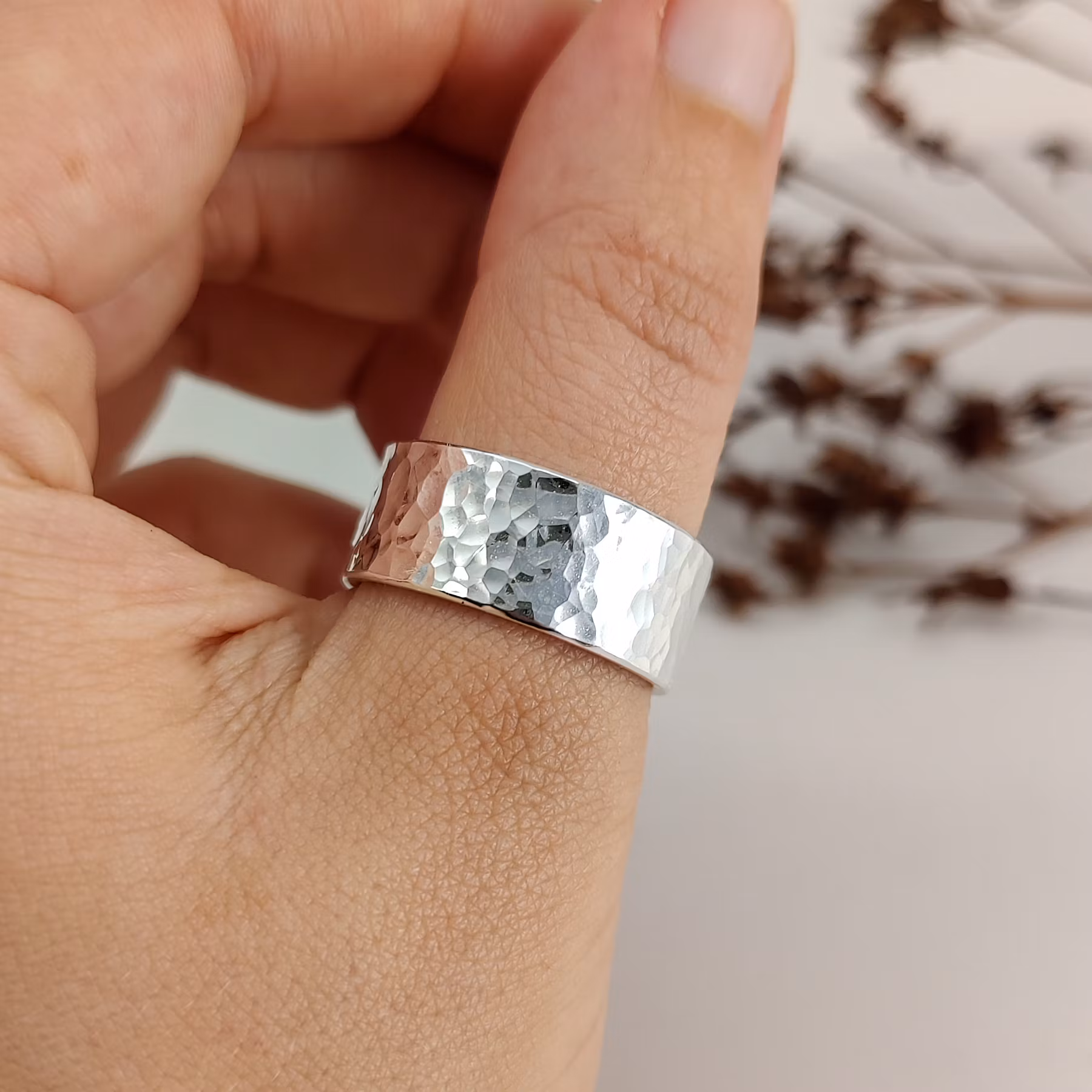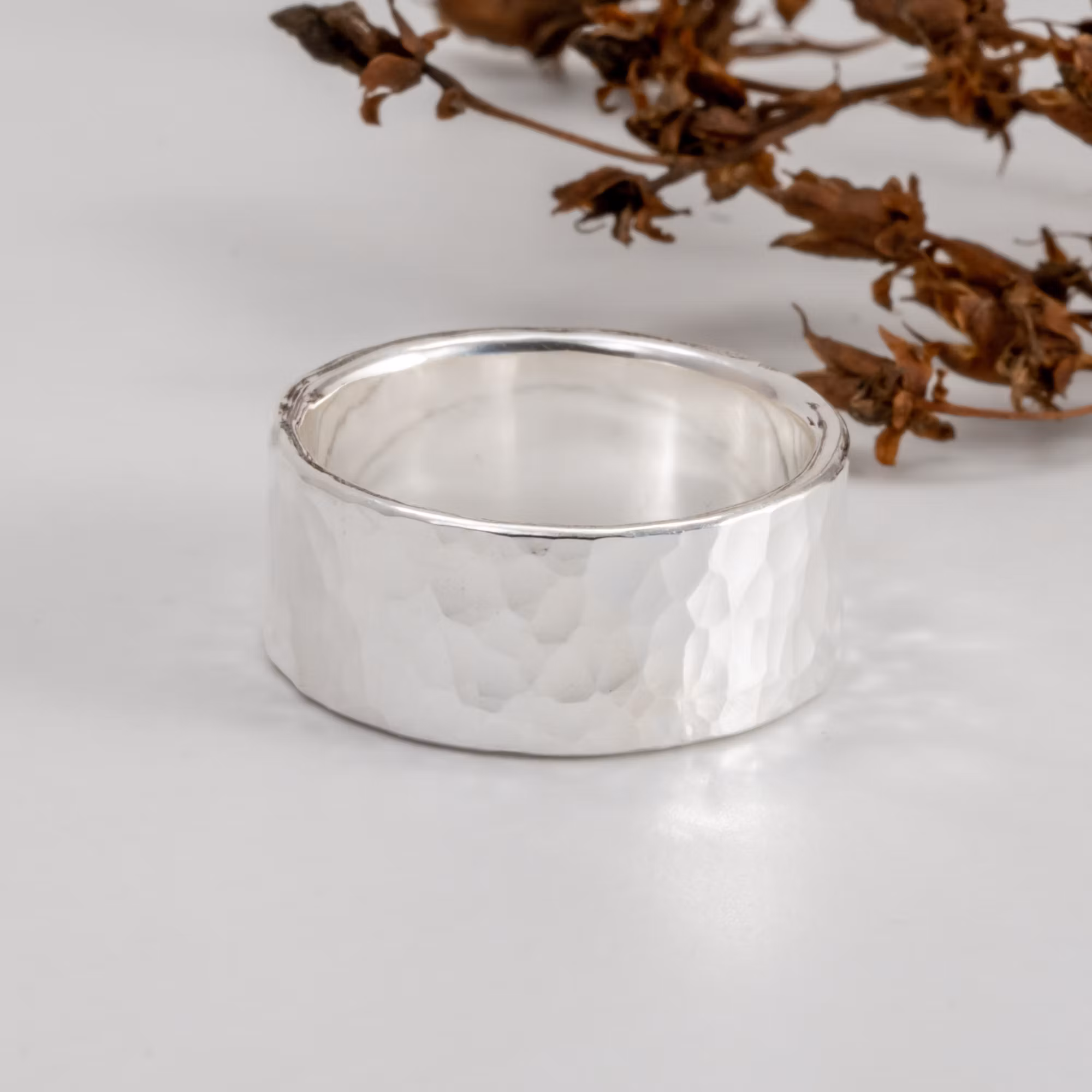 Ring 10mm Hamrad Återvunnet Silver